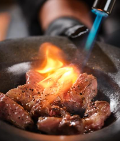 - [기술 4] (선택) 불을 끄기 직전, 토치로 밥 겉면을 살짝 그을린다.