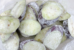 - 물기를 제거한 가지를 마른 전분(감자전분 또는 튀김가루)이 담긴 위생 봉투에 넣고 가볍게 흔들어, 가지 표면에 마른 전분 옷을 얇게 입혀줍니다. 이 과정은 튀김 반죽이 가지에서 분리되지 않고 착 달라붙게 하는 접착제 역할을 합니다.