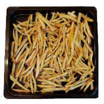 - 1. 넓은 볼에 물기를 제거한 고구마 스틱을 담고, 올리브유(또는 식용유), 설탕(또는 꿀), (선택)소금을 넣어 골고루 버무려줍니다. (고구마 한 조각 한 조각에 양념이 잘 코팅되도록 손으로 조물조물 버무려주세요.)