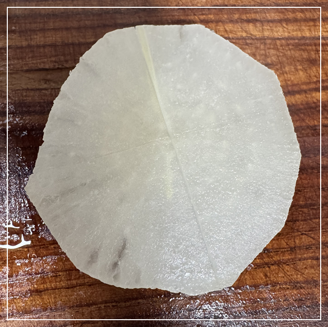 이럴 때는 무 한 토막을 크게 자른 뒤, 가운데에 깊게 십자(╋) 모양으로 칼집만 내주세요.