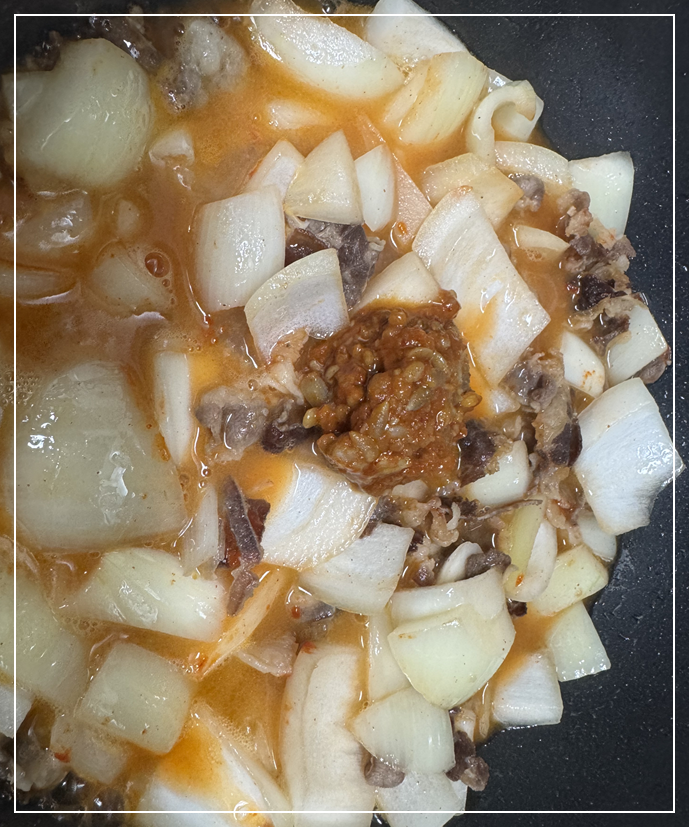 쌈장을 조금 넣으면 고깃집 된장찌개 특유의 입에 착 붙는 감칠맛이 살아납니다.