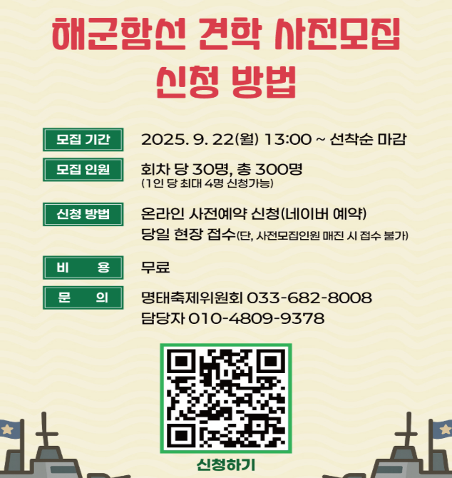1. 해군 함정 견학 사전 모집
