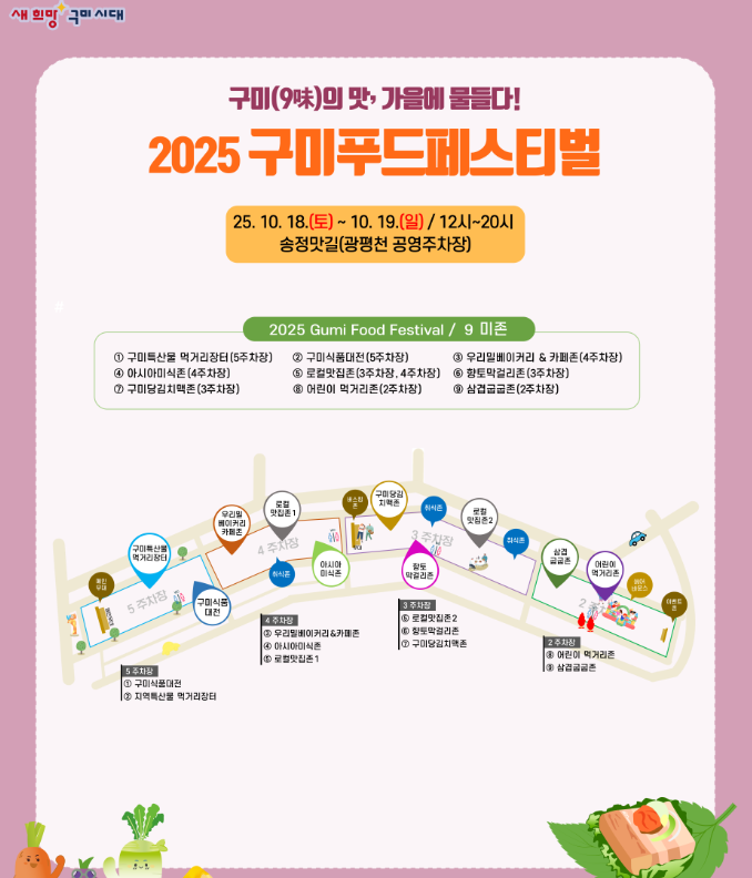 바로 구미시청 앞 '송정맛길'을 가득 채우는 오감만족 미식 축제, **'2025 구미푸드페스티벌'**입니다!