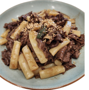 고추장 대신 향긋한 간장 양념을 베이스로, 부드러운 소고기와 알록달록한 채소, 그리고 쫀득한 떡이 어우러진 맛은 그야말로