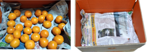 - 신문지는 습기를 빨아들이는 제습제 역할과, 귤이 바닥에 부딪혀 멍드는 것을 막아주는 쿠션 역할을 동시에 합니다.