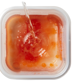 - 물든 반찬통에 설탕 1스푼과 미지근한 물 1스푼을 넣어줍니다. (설탕:물 = 1:1 비율)