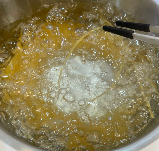 - **페페론치노**를 넣어 30초간 매운 향을 입힙니다.