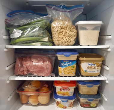 - 지퍼백 + 용기(수직 보관): 대파, 다진 마늘/생강, 1인분 소분 육류, 손질한 채소(양파, 버섯 등), 치즈