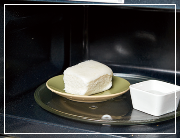 - **물 한 컵(종이컵 기준)**을 떡과 함께 넣거나, 떡 위에 물을 자작하게 붓습니다. (또는 젖은 키친타월로 덮어주세요.)