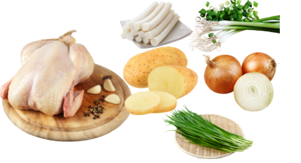 - 닭 1마리 (10호, 약 1kg, 볶음탕용 또는 백숙용)