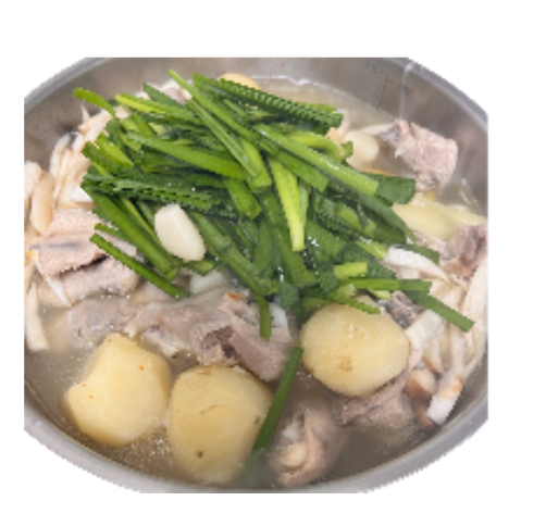 - (채소): 부추 한 줌, 양배추 또는 양파 (가늘게 채 썰어서)