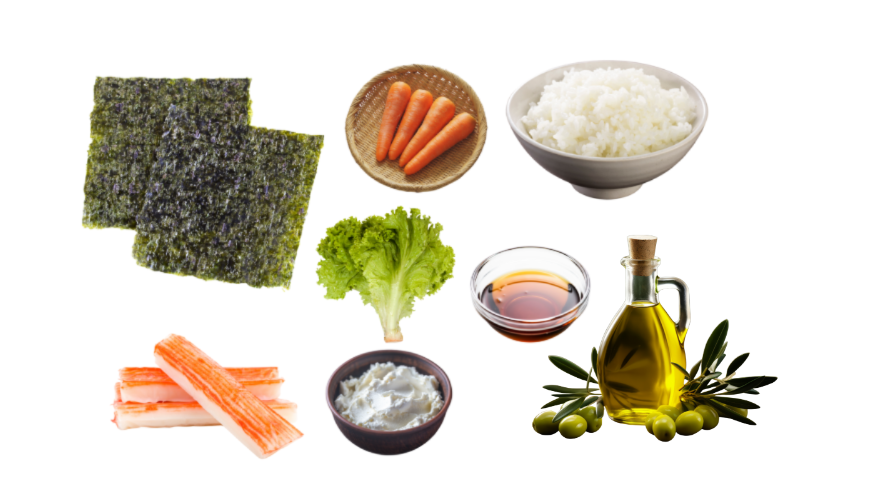 - (선택) 맛살, 상추 또는 루꼴라, 단무지 등 넣고 싶은 재료