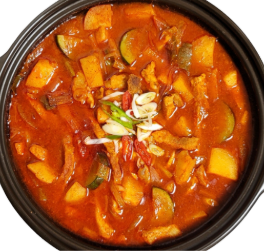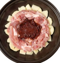 특징인 충청도식 요리입니다. 그중에서도 돼지고기와 감자를 듬뿍 넣고 끓인 '돼지고기 감자 짜글이'는, 고추장과 된장이 어우러진