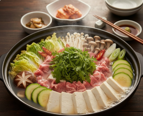 - 1. 재료를 모두 담은 전골냄비를 식탁 위 **인덕션**이나 휴대용 버너에 올립니다.