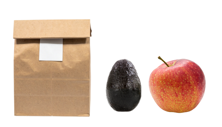 - 2. 종이봉투에 아보카도와 준비한 과일을 함께 넣는다.
