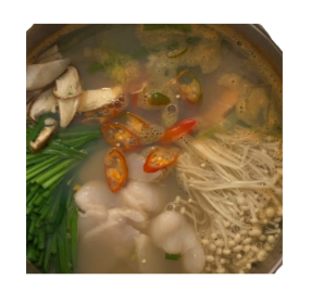 1. (핵심 비법!) 국물이 팔팔 끓어오를 때, 불을 중불로 살짝 줄이고 손질한 관자를 넣습니다. (선택 사항인 버섯도 이때 함께 넣습니다.)