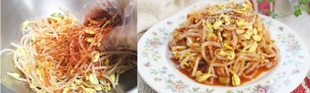 - 하얀 무침: 매운 것을 못 먹는 아이들을 위해 반을 덜어서 고춧가루만 빼고 소금+참기름으로 무치면 담백한 하얀 콩나물무침이 됩니다.