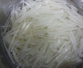- 채 썬 감자를 찬물에 가볍게 헹궈 표면의 전분기를 제거한다.