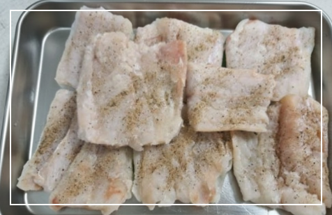 | 3. 밑간 | 소금, 흰 후추, 맛술(소주) | 검은 후추는 지저분해 보임 |