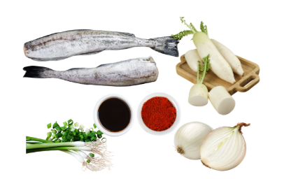 - 재료 준비: 코다리 (세척 후 토막), 무 (나박 썰기).