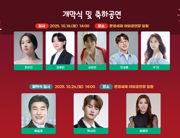 - [가장 중요!] '문경 사과따기 체험' 참가 예매: 이것이 축제의 핵심입니다! 평소에는 들어갈 수 없는 사과 과수원에 직접 들어가, 농부의 안내에 따라 빨갛게 잘 익은 사과를 내 손으로 직접 따보는 최고의 인기 프로그램입니다.
