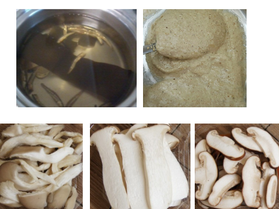 • 2. 버섯의 숨이 죽으면, 준비한 **멸치 다시마 육수**를 모두 붓고 끓입니다.