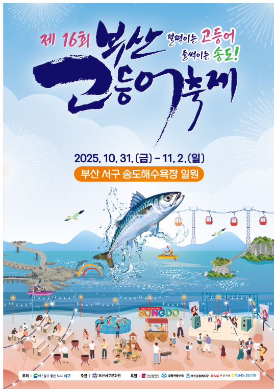 2025 제16회 부산고등어축제 참여 프로그램 사전 신청하세요. 모든 일정은 홈페이지에서 확인하실 수 있습니다. (https://www.busangde.co.kr) * 선착순 접수 마감되며 계좌번호는 부산서구문화원에서 별
