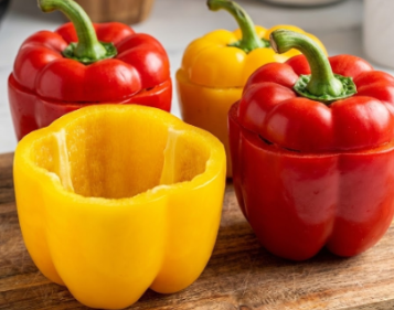 가장 먼저 파프리카를 깨끗이 씻은 뒤, 윗부분(뚜껑)을 가로로 잘라주세요. 숟가락으로 안쪽의 하얀 심지와 씨를 깔끔하게 파내어 컵 모양을 만듭니다.
