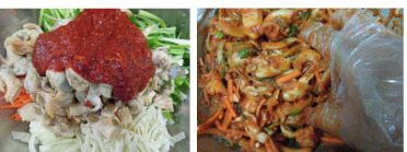 - 분량의 양념장 재료(고추장, 고춧가루, 식초, 설탕, 간장, 마늘 등)를 섞어 숙성시킨다.