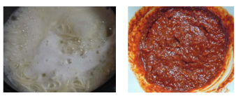 - 고추장 3큰술, 고춧가루 3큰술, 식초 4큰술