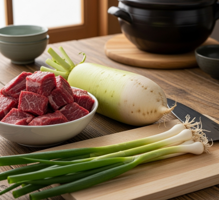 - 얼큰하게 즐기기: 경상도식 얼큰한 소고기 뭇국을 원하시면, 2번 단계에서 고기와 무를 볶을 때 고춧가루 1~2스푼을 함께 넣고 볶아 고추기름을 내주면 칼칼한 맛을 즐길 수 있어요.