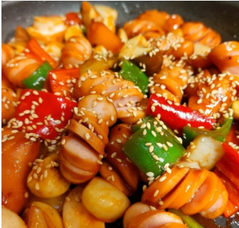 아삭한 채소와 쫄깃한 소시지, 그리고 입에 착 감기는 '단짠' 소스의 조화는 남녀노소 누구나 사랑할 수밖에 없는 맛이죠.