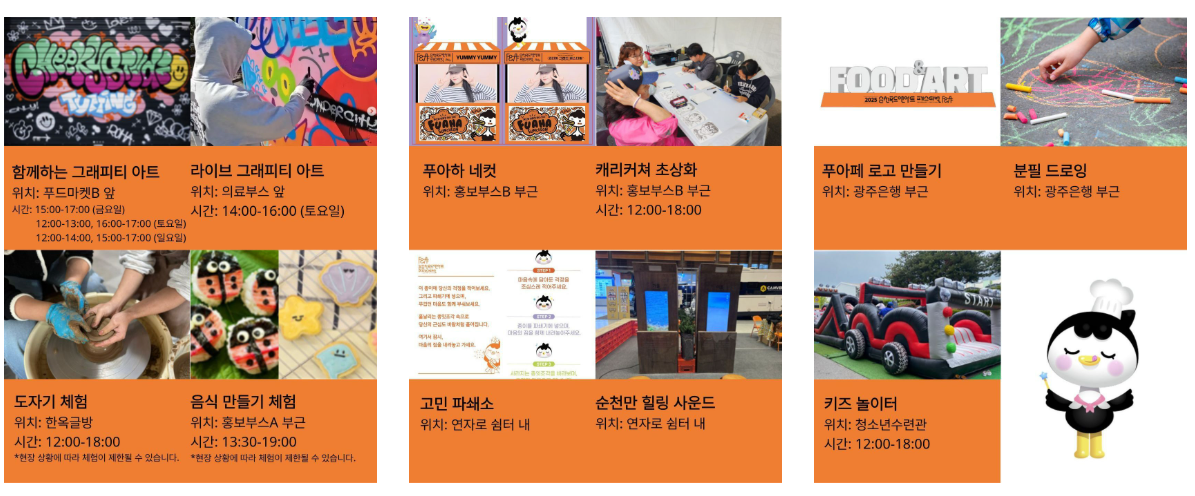 - 축제 주제: 푸드와 아트가 하나 되는 FUAHA SUNCHEON
