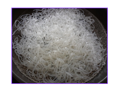 - 3. 데친 실곤약은 즉시 건져내어 다시 찬물에 헹군 뒤, 체에 밭쳐 물기를 완전히 빼줍니다.
