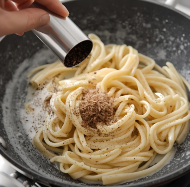 - (파스타/스튜/카레) **'생크림', '우유', '버터', '치즈(파마산, 체다)'**를 추가로 투입하세요. 크림이나 버터의 고소한 지방이 후추의 날카로운 맛을 감싸 안아, 맛을 훨씬 더 부드럽고 풍부하게 만들어줍니다.