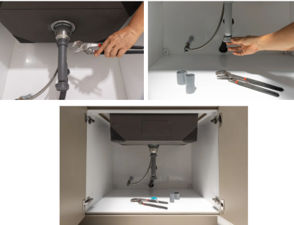 위의 모든 방법이 통하지 않는다면, 싱크대 하부장을 열어야 할 때입니다. 배수관의 굽어지는 부분(S트랩, U트랩)에 찌꺼기가