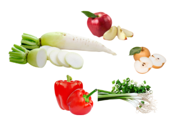- (핵심 비법!) 빨간 파프리카 1/2개 + 사과 1/4개 + 배 1/4개