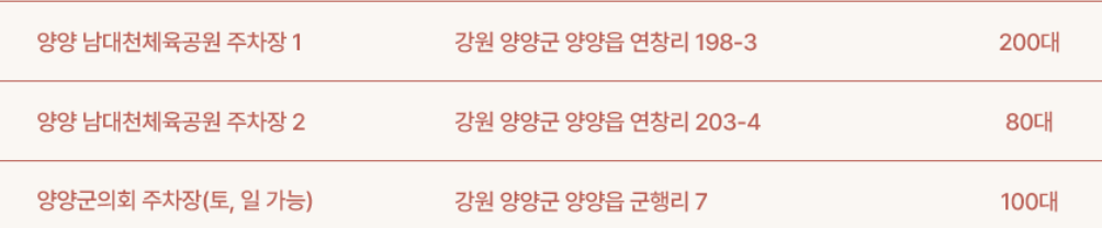 - 2순위 대안 → '양양종합운동장' 주차 후 걷기