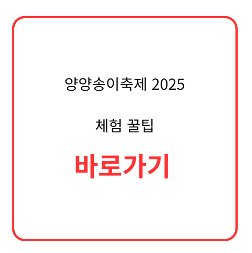 - '뚜벅이' 여행객을 위한 꿀팁 기차(KTX 강릉역/양양역)나 버스를 이용해 양양에 도착했다면, **'양양시외버스터미널'**에서 축제장까지 택시를 이용하는 것이 가장 빠르고 편리합니다. (기본요금 ~ 5,000원 내외)
