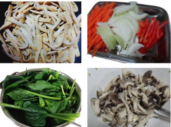 - 양파, 당근, 버섯 등 채소는 모두 가늘게 채 썬다.