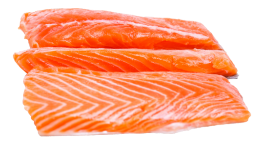 선명한 주황빛, 뚜렷한 흰색 지방층, 손으로 눌렀을 때 탄력이 느껴지는 것이 좋은 연어입니다.