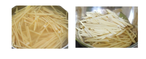 맛있는 고구마스틱을 위한 가장 중요한 단계입니다.