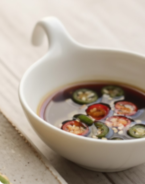 • 진간장 3큰술, 식초 1큰술, 설탕 1/2큰술, 다진 양파 또는 쪽파 1큰술, 고춧가루 1작은술, 참기름 1작은술, 깨소금 1큰술