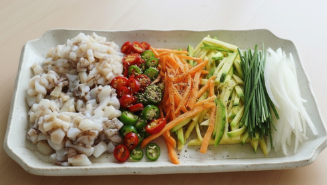 • 1. 오징어는 깨끗이 손질하여 잘게 다지고, 청양고추, 당근, 애호박도 잘게 다진다.