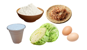 '오코노미(お好み)'는 '취향대로', '야키(焼き)'는 '굽다'라는 뜻으로, 이름처럼 내가 좋아하는 재료를 듬뿍 넣어 부쳐 먹는 일본식