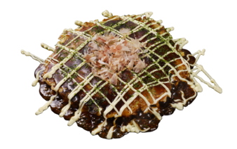 - 파래가루를 솔솔 뿌리고, 마지막으로 가쓰오부시를 듬뿍 올려주면 뜨거운 김에 춤을 추는, 완벽한 오코노미야끼가 완성됩니다.