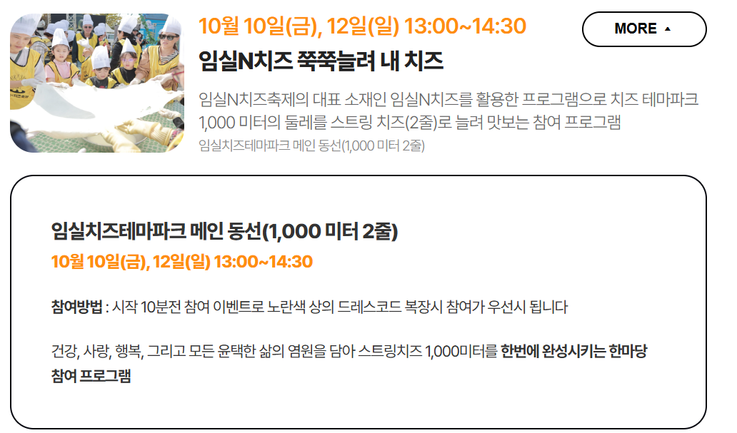 - 주요 장소: 임실치즈테마파크, 임실치즈마을 일원 ( 주차 및 셔틀 안내는 하단에 작성)