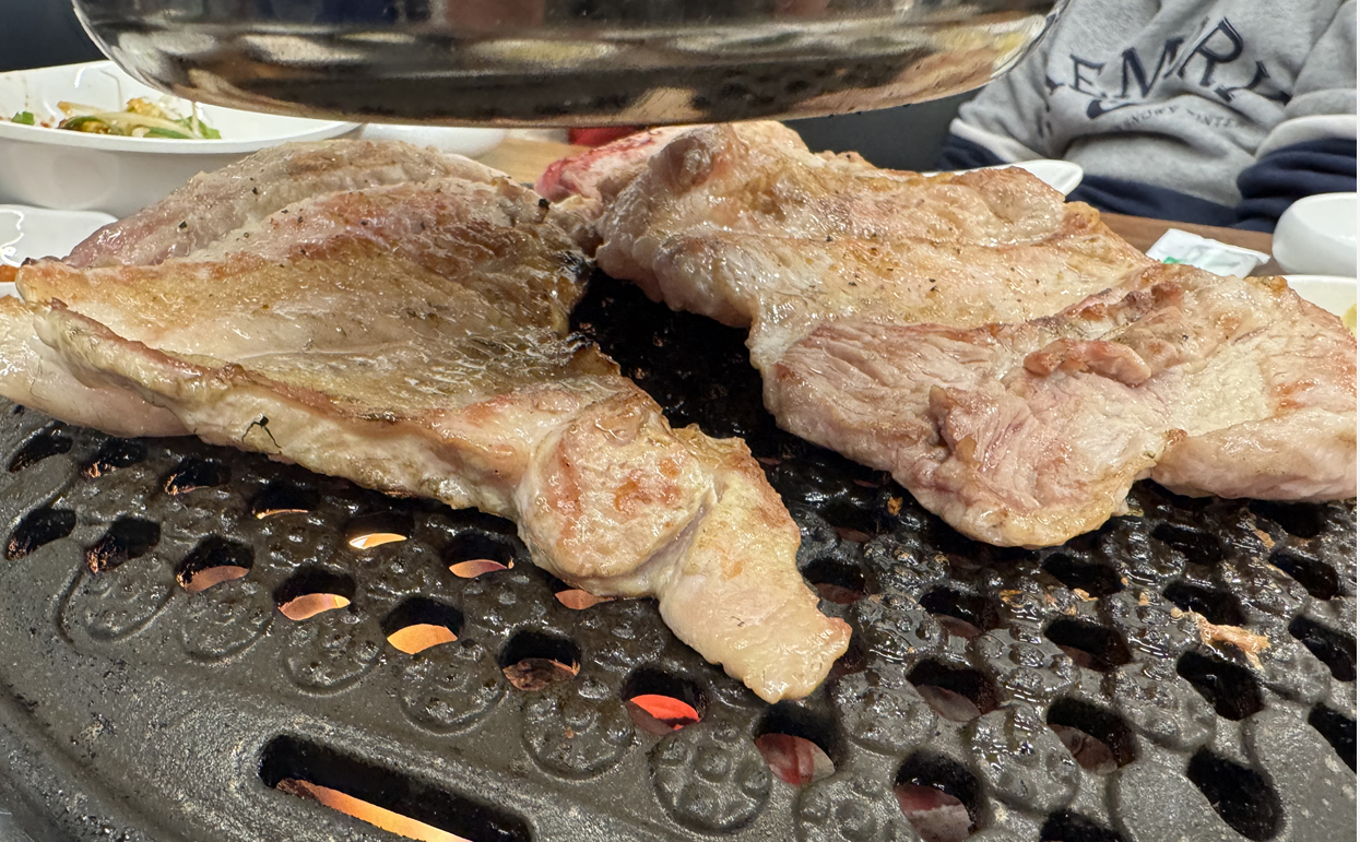 - 불판 가장자리 활용: 중앙 화력이 세니 고기가 어느 정도 익으면 바로 가장자리로 옮겨서 태우지 않게 관리하는 인내심이 필요합니다.