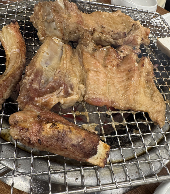 생김새는 갈비처럼 뼈가 붙어있는데, 맛은 삼겹살의 고소함이 응축되어 있습니다. 제가 갈비를 정말 좋아하는 편임에도 불구하고, 이곳에서는 갈비보다 이 뼈 삼겹살이 훨씬 맛있게 느껴졌어요. 다음에 다시 간다면 오로지 뼈 삼겹살만 공략할 예정입니다.