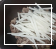 고기가 어느 정도 익고 기름이 나오면, 얇고 네모나게 썬 를 넣고 같이 볶습니다. 무가 고기 기름을 흡수하면서
